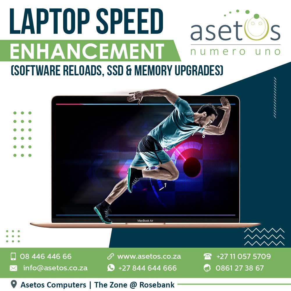 Ready to speed up your computer? Contact us today to schedule your SSD drive installation, memory upgrade, or virus removal. Visit our Rosebank, Johannesburg store for fast service, or use our convenient nationwide courier service from anywhere in South Africa. Let us help you boost your computer’s speed and performance today!